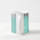 Argent et sarcelle Aqua Blue Faux Feuille métallisée Paillettes Pailletées Métal brossé Monogramme Nom et Initiale Tasse à café ou Mug. C'est le cadeau idéal pour un anniversaire sweet 16, un mariage, une douche de mariée, un anniversaire de mariage, une baby shower ou une soirée d'enterrement de vie de jeune fille pour quelqu'un qui aime le luxe clinquant et les styles chics.