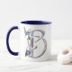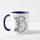 Une police de fantaisie "B", texturisée en métal et décorée des gloires de matin s'enroulant autour de l'aile gauche plus un atterrissage coloré de papillon sur les fleurs.