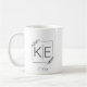 Moderne, feuille, monogramme, initiales, tasse à café cadeau pour les jeunes mariés. Une police classique propre avec une bordure simple et de bon goût et branche feuille est un cadeau mariage réfléchi et unique pour la mariée et le marié. Customisez-le avec leurs renseignements personnels et l'amant du café M. et Mme aura un mariage gardien au trésor pour les années à venir. Trouvez d'autres cadeaux de mariage ou de mariage dans la collection de cadeaux de Mariage simple et moderne dans la Magasin Magnifiquement Abstraite.