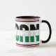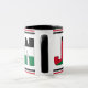 Inscription du drapeau jordanien Mug vert rouge noir blanc avec l'inscription "Jordanie" qui est infusée avec le motif du drapeau national de Jordanie dans les couleurs rouge du moteur de feu, vert de Darmouth, noir et blanc. Le design est fini avec deux lignes doubles minces dans la couleur rouge et noir du moteur à feu sur le dessus et sur le bas. La couleur noire à l'intérieur de la tasse et la poignée de la tasse complètent très bien le design. Jordan Combo Mug est le cadeau parfait pour les Jordaniens fiers de leur héritage.