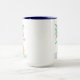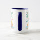 La tasse de Noël à thème tropical de la plage est ornée d'une île au soleil avec un palmier décoré de lampes à cordes et d'ornements et d'un accueil "happy holiday". La ligne inférieure du texte peut être personnalisée avec un nom ou une salutation de votre propre nom. Art par KL Stock