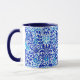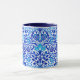 Mug dans un vintage William Morris motif floral jacobéen, numériquement rehaussé et coloré, en bleu cobalt et turquoise sur un arrière - plan blanc