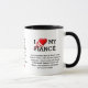 J'AIME MA FIANCÉ Mug chrétienne personnalisée avec un TEXTE PERSONNALISABLE. Simple et élégant café CHRÉTIEN INSPIRATIONNEL Mug qui dit J'AIME MON FIANCÉ et comprend des coeurs rouges. En dessous se trouve le texte basé sur le verset de la Bible de 1 Corinthiens 13. Un cadeau idéal pour séduire les couples, Anniversaires, Noël, Anniversaires, VALENTINE'S, etc. Vous pouvez les ajouter à votre table de marchandage lors de conférences et conventions de relations, remplacer le verset de la Bible par votre propre devise, ou donner comme cadeaux de faveur. BOYFRIEND, GIRLFRIEND, MARI, WIFE, FIANCÉ et FIANCÉE versions disponibles.