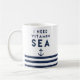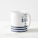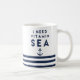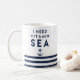 Souffrant d'une carence vitaminique en "mer" ? Sirotez votre café ou votre thé du matin à partir de notre mignonne tasse nautique estivale avec "I Need Vitamin Sea" en lettres bleu marine avec une illustration d'ancre et une bordure de bande nautique.