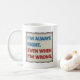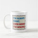Tasse comportant la conception avec le texte "j'ai toujours raison. Même lorsque j'ai tort" en bleu et rouge.