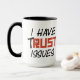 I have tRUST issues - Black symbole, Red RUST, Black text on Clear arrière - plan.