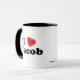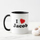 J'aime Jacob ! Votre nom est-il Jacob ? Avez-vous une épouse, une amie, un membre de la famille féminin ou un ami féminin que vous savez des amours vous ? Ou avez-vous un mari, un ami, un membre de la famille masculin ou un mâle Jacob appelé par ami que vous aimez profondément ? Si oui, ce "que j'aime" la tasse est exactement le cadeau que vous recherchez ! Les caractéristiques de conception la lettre "je" dans le lettrage noir avec un coeur rouge sur le dessus et le "Jacob" dans le lettrage noir sur le fond.