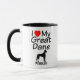 Cette tasse personnalisée "I Love My Great Dane" est parfaite pour toute personne qui possède un chien Great Dane, changez simplement le nom de votre propre Great Dane.