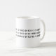 Une tasse avec "moi aime mon geek !" imprimé en code binaire.