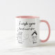 Cette tasse branchée présente Deux mignonette maison de tirage à la main de vous et votre bestie! Les mots "Je souhaite que vous viviez à côté" apparaissent dans le script moderne noir, et cette Mug de café présente un nom personnalisable de vous et votre meilleur ami sur un arrière - plan blanc. élégants meilleurs amis tasses.
