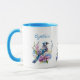 Mug Jais bleus et jolies fleurs d'été Nom du monogramm