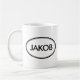 Vérifiez cette tasse de Jakob ! Votre nom est-il Jakob ? Ou avez-vous un mari, un ami, un membre de la famille masculin ou un mâle Jakob appelé par ami ? Si oui, cette tasse "de timbre nommé" est exactement le cadeau que vous recherchez ! Les caractéristiques de conception "Jakob" dans le grand lettrage noir entouré par deux ovales, un mince et un épais.