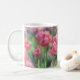 Une photo de quelques belles tulipes fleuries dans le jardin imprimé sur une tasse classique.