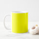 Un mug classique de couleur jaune vif et uni "Jaune". Ce jaune est du jaune pur. Cliquez sur "Personnaliser" pour changer la couleur ou ajouter un motif ou un design. Code hexadécimal du produit : #ffff00