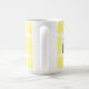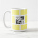 Cette tasse de deux photos moderne présente des carrés jaunes et un doux tableau d'Olive, un magnifique mélange du Labrador. Les photos sont personnalisables.