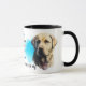 Un portrait d'un magnifique chien jaune de Labrador Retriever est la caractéristique sur les deux côtés de cette tasse. Chaque image est placée sur un arrière - plan à bec bleu vif. Entre les deux images est le texte qui décrit ce compagnon loyal et courageux, avec "le chien LABRADOR RETRIEVER" en noir au bas. Tout le texte est facilement customisé à tout ce que vous préférez ; décrivez votre fidèle ami !