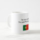 Une tasse avec le drapeau portugais et l'énonciation "je suis ne hurlant pas moi suis simplement portugais !"