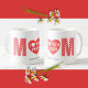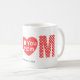 Ce design est assorti d'un design "MOM" en lettres motifs de coeur rouge. La lettre "O" est remplacée par un coeur rouge avec le texte "Je t'aime maman". Un cadeau merveilleux pour votre mère pour la fête de la mère. Faites-lui savoir que vous l'aimez et qu'on vous en rappelle chaque fois qu'elle sirote son café ou son thé. Customisez avec le nom de l'enfant pour le rendre unique et personnel.