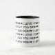Cette énorme tasse noire et blanche qui dit, "I Love You Mom" en noir toute casquette police moderne avec des accents de coeur entre est parfaite pour donner à votre mère lors de n'importe quel jour férié - Noël, Hanoukka, Saint-Valentin ou fête des mères. Elle va l'aimer comme elle vous aime et sourira et pensera à vous chaque fois qu'elle l'utilise !