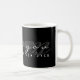 Cette tasse à café présente "maman" dans la typographie moderne avec des messages personnalisés de "I Love You" dans le script en couches blanches et "Best Mom Ever" dans la typographie de décoration artistique, tous personnalisables pour répondre à vos besoins. Votre message à maman est présenté dans une élégante typographie de script moderne en blanc avec des accents gris ombragé sur un arrière - plan noir simple avec une toile de fond "maman" offerte dans une typographie de script unique en gris foncé. Concevez votre propre cadeau pour la tasse de la fête des mères ou de la mère avec ce modèle facile à utiliser en utilisant le champ de message fourni. Vous pouvez customiser plus loin en sélectionnant "personnaliser" et en accédant à la section calques pour visualiser les images et modifier la couleur arrière - plan ou d'autres éléments de conception selon votre goût, ou en utilisant le bouton "contacter le concepteur" pour obtenir de l'aide. Chaque mère mérite de savoir qu'elle est la meilleure, alors laissez maman boire son café ou son thé dans un style élégant à la maison ou au bureau sachant qu'elle est la meilleure. Un design féminin moderne parfait la fête des mères, l'anniversaire de la mère ou toute autre occasion spéciale où vous fêtez votre mère.