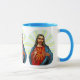 Jésus coloré sur une tasse de café qui est brillant et gras. Prêt à boire du café, du thé ou du cacao chaud.