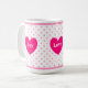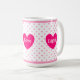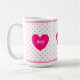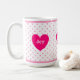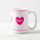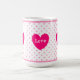 Mug magnifique avec cœur, pois roses et texte personnalisé joie, amour, lumière.