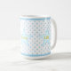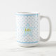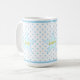 Magnifique mug avec des étoiles, des pois bleu clair et un texte personnalisé joie, amour, vie.