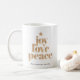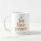 Célébrez la saison des Fêtes avec cette élégante tasse à café de Noël avec les mots "joie", "amour" et "paix" empilés en forme d'arbre avec une étoile d'or sur le dessus. Personnalisez-le avec votre nom de famille, en faisant un cadeau réfléchi ou un ajout festif à votre décor de vacances. Le design simple et sophistiqué de la lettrage dorée ajoute une touche de chaleur et d'amour à chaque gorgée.