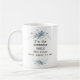 Une jolie tasse décorative féminine personnalisée, avec des bouquets de fleurs d'aquarelle bleue et une citation amusante sur le plus jeune enfant,© Julie McIver