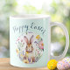 Entrez dans la saison avec cette chope de Pâques enchanteresse ! Un mignon lapin à l'aquarelle est prêt à vous accueillir, entouré d'une bouffée de fleurs printanières vibrantes. Le message "Bonne Pâques" en écriture élégante ajoute une touche de charme, tandis que le côté opposé peut être customisé avec un nom, ce qui en fait un cadeau extra-spécial. Le tout sur un arrière - plan vert clair et frais, créant une touche de magie saisonnière pour votre cuisine ou votre maison.