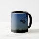 Jolie tasse de café avec un cheval et ciel nocturne avec étoiles et chênes.