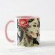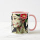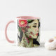Jolie femme avec fleur rose dans ses cheveux et vintage vibes art collage abstrait ai art.