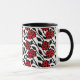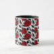 Fleurs rouges, noires et blanches, carrelage blanc motif marque d'anniversaire.
