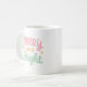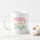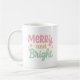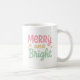 Mug moderne de Noël avec un design mignon et amusant avec "Joyeux et brillant" dans joyeux rose pastel et vert en lettrage décontracté.