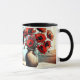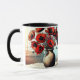 Vase de fleurs. Des pavots rouges dans un vase blanc assis sur une table. Jolie bande dessinée style livre de dessin animé Poppies.