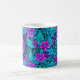 Joli motif élégant de fleurs violettes, bleues, turquoises, turquoise et vertes et feuillage personnalisé tasse à café.