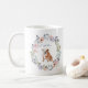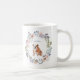Cette jolie tasse présente une courroie florale à l'aquarelle tendance, avec de jolies fleurs et des feuilles en rose, pêche, bleu poussiéreux, violet et vert. Une illustration aquarelle d'un mignon Bulldog anglais se trouve à l'intérieur, avec un endroit pour ajouter soit votre propre nom soit celui de votre animal ! Le cadeau parfait pour la mère de chien fière.