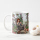 Mug Jolie femme buvant du café, son chien et Plantes