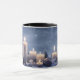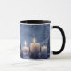 Une jolie scène hivernale avec des bougies dans la neige. Une belle tasse de Noël de vacances.