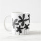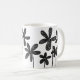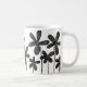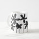 Un design original de tasse avec un agencement attrayant de stylos noir et blanc dessiné à la main et des fleurs à l'encre.