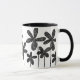 Un design original de tasse avec un agencement attrayant de stylos à encres dessinés à la main et des fleurs à l'encre.
