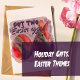 Tasse décorative, calligraphie élaborée "Happy Easter" souhaits avec ornement d'illustration à base de plantes qui donne un message visuel joyeux et une forte ambiance optimiste. Il est conçu avec une combinaison spéciale, écriture manuscrite de polices et d'illustration sous forme végétale comme décoration. L'arrière - plan est un mélange d'aquarelle de couleurs pastel bleu et violet qui crée une belle atmosphère artistique.