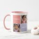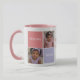 Notre tasse rose Joyeuse fête des Mères illuminera votre célébration de la fête des Mères. Changez les images avec vos photos préférées et personnalisez chaque carré avec votre propre texte ou nom pour faire de cette tasse un souvenir inoubliable.