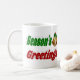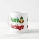 Mug avec Bonnes Fêtes en texte 3D et cloches de Noël. Mug disponible en plusieurs styles et couleurs. Un grand cadeau de Noël pour siroter des boissons chaudes les nuits froides pendant les vacances.
