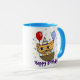Joyeux anniversaire mok. Amusant à offrir en cadeau d'anniversaire, Texte : Joyeux Anniversaire Image : Chat orange avec deux ballons