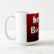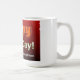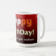 Cette tasse de café d'anniversaire joyeuse et lumineuse avec arrière - plan rouge et lettres blanches et orange est un cadeau d'anniversaire pour les employés.