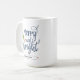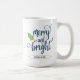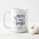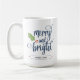 Célébrez la saison des Fêtes avec cette tasse de café de vacances joyeuse qui présente une illustration simple d'une feuille verte de saint aux baies rouges, une élégante typographie de script bleu qui dit "Joyeux et brillant", et de l'espace pour ajouter un texte personnalisable ou un nom. Cette charmant tasse fera un grand cadeau de Noël à tous ceux qui figurent sur votre liste.