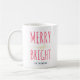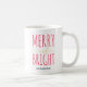 Cette tasse présente du Merry et du Bright en rose et jaune lettré à la main. Vous pouvez le customiser avec un nom et il fait un grand cadeau.