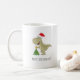 Ce joyeux Christmasaur ! Coffee Mug présente une illustration de la mignonne Dinosaure portant un chapeau de Père Noël et décorant l'arbre de Noël. Cette illustration est conçue dans les couleurs traditionnelles de Noël : vert, rouge, jaune. Vous pouvez facilement changer le texte en "Joyeux Noël !" à l'aide de l'outil de personnalisation Zazzle.