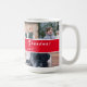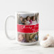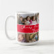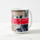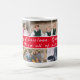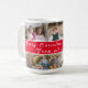 Le design dispose d'une salle pour six photos à l'avant, avec arrière - plan à motifs de casquettes Père Noël, bas de Noël et sucres de canne. Centrer l'avant affiche votre texte en blanc cursif contre un support rouge rectangulaire. Un cadeau parfait "De nous tous".